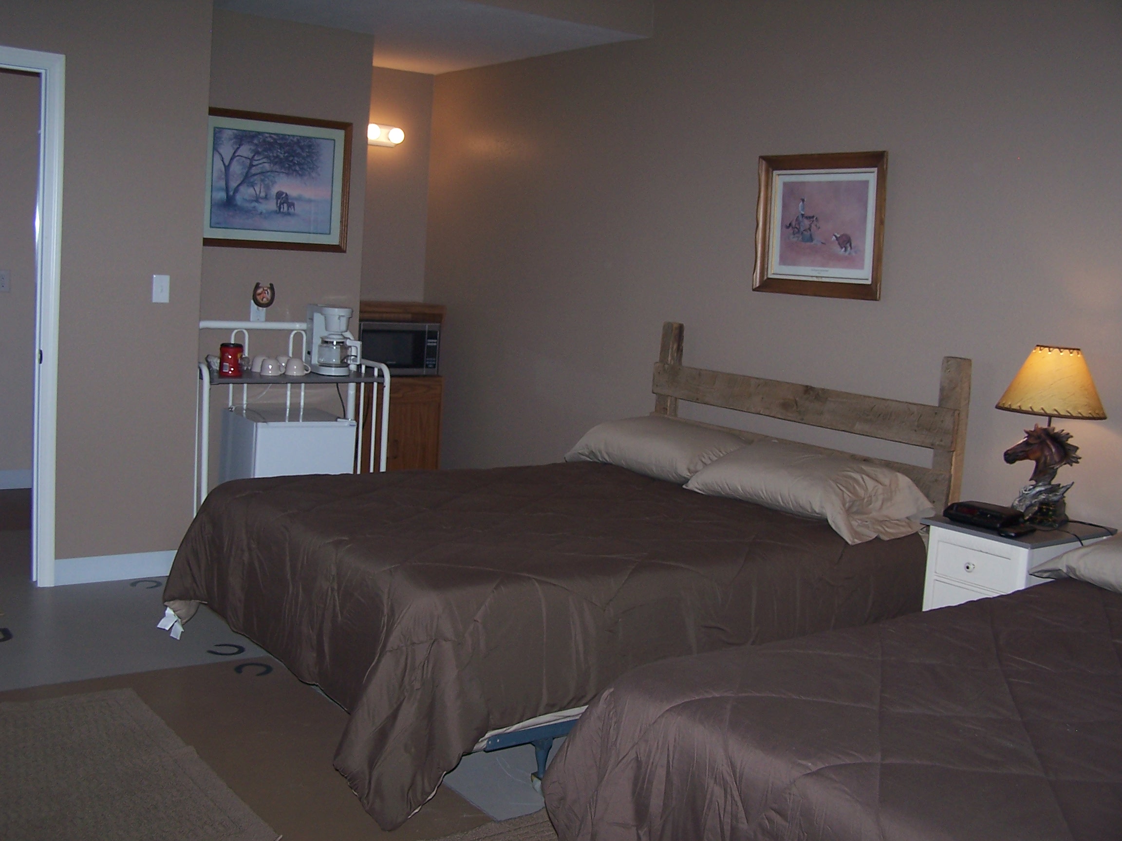 Reserve one of our two bunkhouse rooms right by the barn, both with a private bath, refrigerator, coffee maker, microwave, and television.
